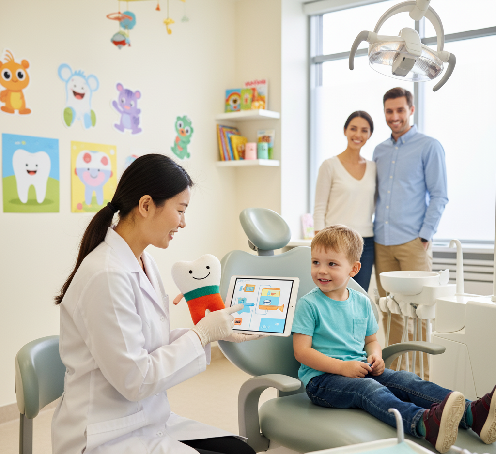Parler régulièrement du prochain rendez-vous avec des explications simples et adaptées aide à diminuer l’inquiétude. Utiliser des livres, des dessins animés ou des jeux de simulation rend la notion de « dentiste » moins abstraite et diminue la peur face à l’inconnu.